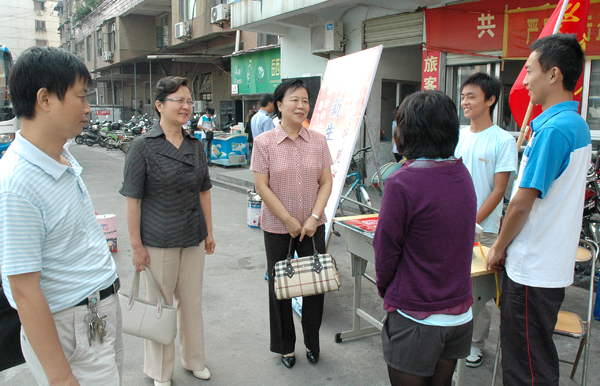 上午,党委副书记、副院长朱士群,副院长时新中、闵永新、张群等校领导,在招生就业处、学生处等相关部门领导的陪同下,亲临龙山校区和菱湖校区的新生报到点,查看了新生报到情况,看望了正在现场工作的院系的老师和同学们。副院长王海燕,党委副书记、纪委书记殷红在办公室同志的陪同下,亲临学校设在火车站、汽车站等地的接待点,看望了在那里服务的学生志愿者。