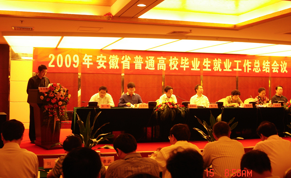 10月14日,安徽省2009年普通高校毕业生就业工作总结会议在六安市隆重召开,副院长张群和招生就业工作处、学科建设与研究生处相关同志参加了会议,省毕业生就业委员会副主任、教工委书记、教育厅厅长程艺在会上作了工作报告,张群副院长代表beat365官网在大会作典型发言。
