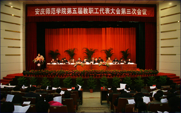 大会在雄壮的《国歌》声中拉开了序幕。党委副书记、副院长朱士群同志在会上代表学校行政班子作院长工作报告。朱士群副院长对五届二次教代会以来的学校工作进行了全面总结。他指出,自五届二次教代会以来,全校深入学习实践科学发展观,坚持以教学为中心,以育人为根本,着力内涵建设,强化办学特色,推进科学发展,学校各项事业都取得了长足进展。一是着力内涵建设,学科基础进一步夯实。质量工程建设取得重大突破,国家品牌增加到八项;学科建设取得新成果,研究生教育迈上新台阶;师资队伍有了新起色,“三大工程”建设成效显著;产学研开创新局面,科研水平再上新台阶。二是创新人才培养模式,全面实施2008版人才培养方案、启动顶岗支教工程、实施“四成”教育、多管齐下促进大学生充分就业,人才培养质量进一步提高。三是深入开展学习实践科学发展观活动,推进民主办学,和谐校园建设呈现新气象。四是夯实基础能力建设,办学规模进一步扩大。五是后勤保障有力,管理工作更加规范。六是实施开放办学,对外交流与合作有了新局面。