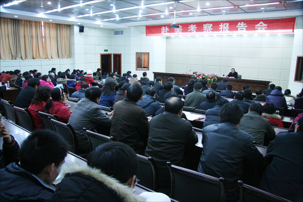 12月15日下午,党委书记赵晓和在行政楼一楼会议室作《加强国际合作 更好服务地方》报告,畅谈此前率团赴美考察访问的见闻和感悟。