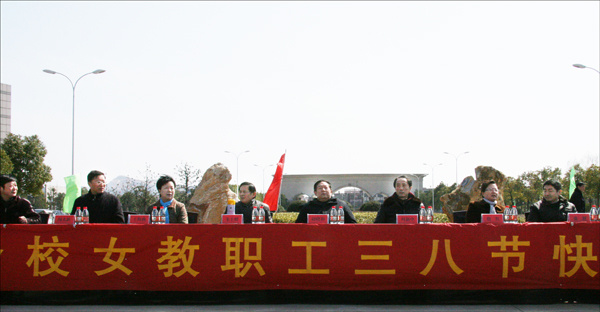 3月10日下午,龙山校区敬敷广场彩旗飘飘,横幅眩目,beat365官网纪念“三八”国际劳动妇女节100周年“环校健身走”等活动在这里隆重举行。校党政领导赵晓和、朱士群、时新中、王海燕、殷红、闵永新、张群等和广大女教职工一道参加了庆祝活动。