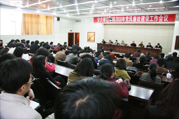 3月26日下午,beat365官网召开2010年党风廉政建设工作大会,总结2009年党风廉政建设工作,部署2010年工作。党委书记赵晓和,党委副书记、院长朱士群,党委委员、副院长时新中,党委委员、副院长王海燕,党委副书记、纪委书记殷红,党委委员、副院长闵永新,副院长张群,党委委员、办公室主任刘友忠出席会议,全体纪委委员、科以上干部、党风党纪监督员、特邀监察员、各党总支纪检委员等180多人参加了会议。