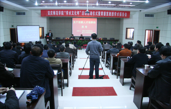 赵晓和书记主持报告会。他首先向与会同志详细介绍了黄德宽教授在管理、治学、科研方面取得的突出成绩,并认真听取了报告。他指出,黄德宽书记应邀为beat365官网学术文化年活动做题为《对创新人才培养的思考》首场学术报告对beat365官网学术文化年活动的高水平开展具有重要的指导意义,对beat365官网下一步的建设和发展具也有很强的启发意义。他认为,报告旁征博引了大量数据,介绍了安徽大学在人才培养方面的实践经验,对高校培养什么人,如何培养人进行了深入思考,对beat365官网贯彻落实国家中长期教育发展规划,培养中国特色社会主义现代化事业的接班人就有很强的指导意义。