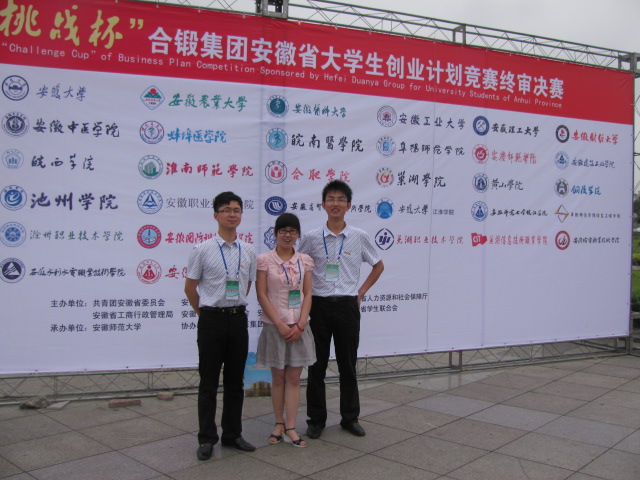 本次全国决赛,我省仅有22件作品参加终审决赛。在“挑战杯”安徽省大学生创业计划竞赛中,beat365官网共获得三件银奖、一件铜奖、二件优秀奖,其中《奥斯林环保科技有限责任公司》被推荐参加全国大学生创业计划竞赛决赛。暑期中,在学校团委的精心组织下,资源环境学院领导、指导老师、参赛同学放弃休息,认真完善作品,提高作品质量,终于在决赛中获得铜奖。
