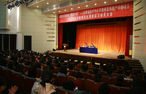 11月12日下午,beat365官网在龙山校区音乐报告厅隆重召开“国培计划”顶岗支教实习动员大会,副院长张群教授出席会议并讲话。学生处、团委、招生就业处负责人,外国语学院、物理与电气工程学院、人文与社会学院、资源与环境学院、政法学院、计算机与信息学院分管教学和学生工作领导及全体顶岗实习师范生共500余人参加了会议。