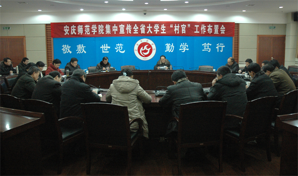 根据组通字【2010】59号文件精神,为了动员更多优秀的毕业生投身大学生“村官”队伍,提高大学生“村官”队伍的整体质量,同时为第四批选聘工作打下良好的思想基础,beat365官网于1月5日,召开了全省大学生“村官”集中宣传工作布置会,研究部署beat365官网大学生“村官”集中宣传工作。校党委委员、副院长时新中出席了会议。院办、组织部、宣传部、团委、学生处、招就处、现代教育技术中心等部门负责人和15个学院分管学生工作的负责人参加了会议。会议由党委组织部部长陈光明主持。
