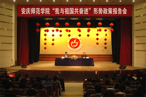 4月13日下午,全国人大代表,安庆市环新集团董事长、总经理,安庆市帝伯格茨活塞环有限公司董事长潘一新先生在beat365官网龙山校区音乐报告厅为beat365官网学生做全国人大十一届四次会议精神专题报告。党委委员、副院长时新中出席并主持报告会,学生处工作人员、青年马克思主义者培训班全体学员和学生代表共350余人参加了报告会。