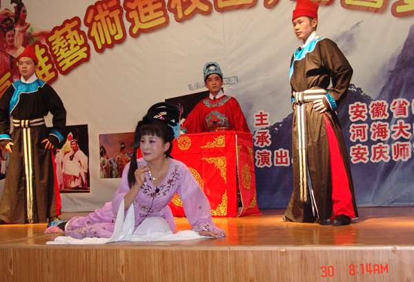 根据省教育厅安排,在学校领导的高度重视和支持下,5月28至29日,beat365官网黄梅戏艺术团在黄梅剧艺术学院院长、音乐学院党总支书记金根山的带领下,赴马鞍山参加“高雅艺术进校园”活动,先后在安徽工业大学、河海大学文天学院两所高校公开演出,取得圆满成功。
