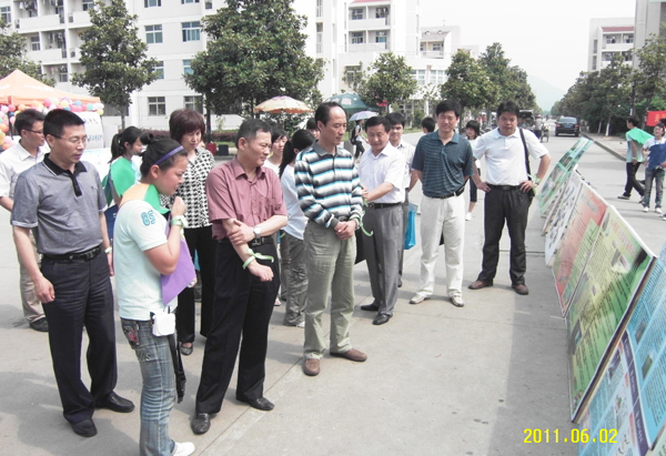 活动期间,校党委副书记、院长朱士群,副院长时新中,校党委委员、副院长闵永新,校党委委员、副院长汪时珍在资源环境学院党政领导的陪同下来到龙山校区第一食堂后门,观看了宣传图片展。校领导认真地观看每一幅图片,对此次活动的开展给予充分肯定。朱士群院长指出,目前环境问题较为严重,作为当代大学生来宣传和倡导环境保护的意义,用自己的实际行动来带动更多的人参与到环境保护中,具有十分重要的意义。朱士群院长还要求同学们勇于担负责任,努力学习专业知识,提高专业水平,用科学知识来解决目前环境保护方面存在的难题,为实现绿色家园而奋斗。最后各位领导在活动横幅上签名留念,再次表达了对于此次活动的大力支持与肯定。