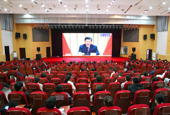 5月10日上午10时,庆祝中国共产主义青年团成立100周年大会在北京人民大会堂隆重举行。中共中央总书记、国家主席、中央军委主席习近平发表重要讲话。校党委理论学习中心组成员,各学院党组织书记和副书记,共青团干部,团员青年等广大干部师生集中收看了大会直播。广大干部师生通过认真收看学习习近平总书记的重要讲话,共同重温了共青团艰苦卓绝的奋斗历程,并结合自身学习、生活、工作实际畅谈感想体会。