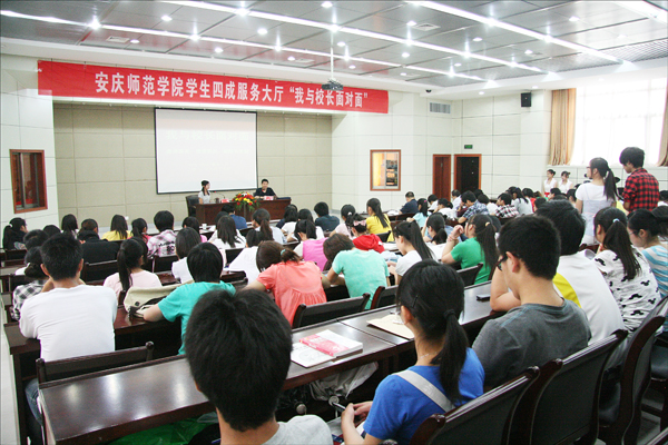 在学生提问环节,同学们围绕考风考纪、周末讲坛、学生宿舍网络、国培计划、顶岗支教、校园安全等话题提出了自己的疑惑,张群副院长都做了详细的回答。来自美术学院10级动画班的江琴告诉记者,“这样的活动挺有意义的,同学都很积极,问的问题都很贴近生活。张院长说话很风趣,回答也很实在,分析问题很清楚”。