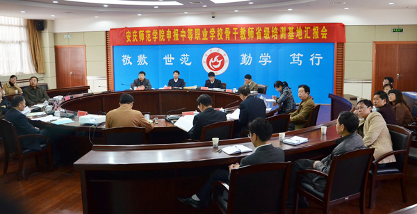 上午九点,“培训基地”评审工作汇报会在校行政楼二楼会议室举行,校党委书记何小祥,党委副书记、院长朱士群,党委委员、副院长闵永新以及教育学院、继续教育学院、保卫处等相关部门负责人等听取了汇报。汇报会由副院长闵永新主持。