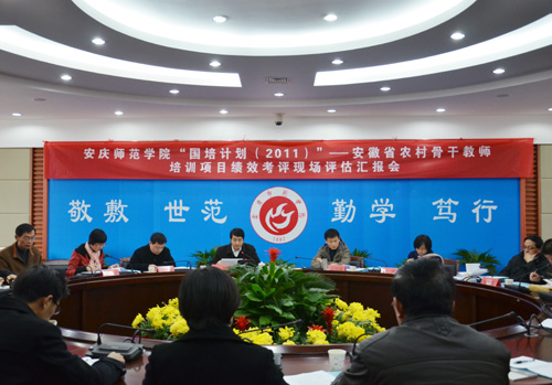 12月1日上午,2011年“国培计划”——安徽省骨干农村教师培训项目绩效考评汇报会在beat365官网行政楼二楼大会议室召开。绩效考评小组专家武庆鸿、杨萍、傅民、操璋、周红、徐光武和beat365官网副院长张群出席会议,学校相关单位领导及相关学院教师、班主任参加会议。