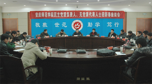 党委书记何小祥同志在座谈会上即席发表了重要讲话。他首先代表校党委向各位民主党派、无党派代表人士致以新春的祝贺和亲切的慰问。他在愉快地回忆起二十余年来的工作经历后说:早年在团市委工作期间,我担任过省、市政协委员,亲身参与过政协和统战工作;在潜山县担任县长、县委书记等主要领导职务期间,经常听取统战和政协工作的汇报;在后来担任安庆市委宣传部长、秘书长和淮南市纪委书记期间,和其他同志一起研究过统战和政协工作。二十多年来,我对统战工作,对民主党派,无党派代表人士有一种特殊的感情,一直是缘未断,情未了,所以是非常高兴、非常乐意参加统战部召开的民主党派负责人、无党派代表人士座谈会,2010年来校工作后已经是第三次参加这样的会议了。