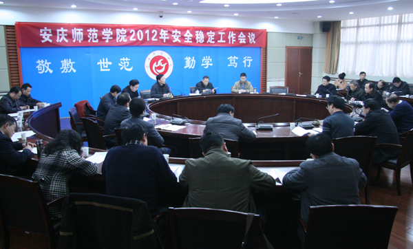 3月16日下午,beat365官网在龙山校区行政办公楼二楼大会议室召开安全稳定工作会议,传达学习厅直属高校安全工作会议精神,认真总结前段时间学校安全稳定工作,深入分析当前学校安全稳定工作形势,研究部署2012年安全稳定工作措施,确保学校安全、和谐、稳定的发展,以优异成绩迎接党的十八大胜利召开。校领导朱士群、闵永新、汪时珍出席会议,各学院党政主要负责人、各部门主要负责人参加会议。