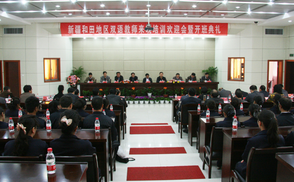 省人力资源和社会保障厅副厅长刘少华在讲话中对beat365官网承办双语教师培训的各项准备工作给予了充分肯定。他指出,人才援疆作为新一轮援疆工作的重要组成部分,是五个援疆内容之一。他要求各有关部门要着眼大局、齐心协力、立足实际,确保培养工作取得实效。他对学员提出三点希望:一是要热爱祖国、提升境界,努力成为维护民族团结的可靠力量;二是要潜心学习、大胆实践,努力提升和田地区中小学和学前幼儿园教育的整体质量;三是要严格自律,完善自我,努力维护新疆青年的良好形象。