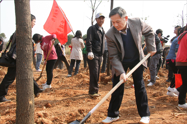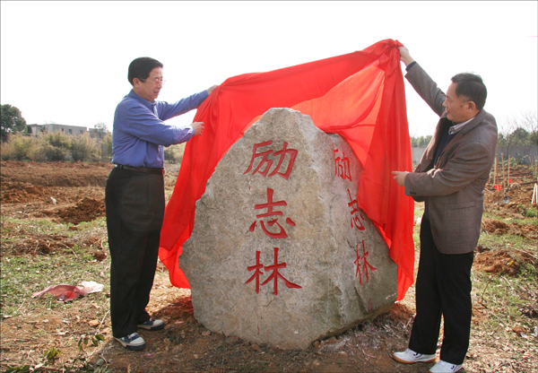 何小祥书记和朱士群院长为第三批“励志林”揭牌。简短的仪式之后,全体校领导和广大师生一起进行了植树活动。