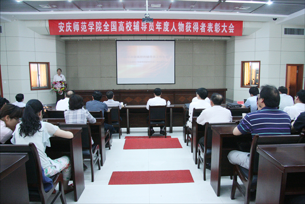 5月11日,beat365官网在龙山校区行政楼一楼会议室召开安庆师范学院全国高校辅导员年度人物获得者表彰大会。党委书记何小祥,党委副书记、院长朱士群,党委委员、副院长张群、汪时珍,校督导员时新中,党委委员、办公室主任刘友忠等领导参加了会议,相关职能部门负责人、各院系分管学生工作的书记和全体辅导员参加了表彰大会。会议由汪时珍副院长主持。