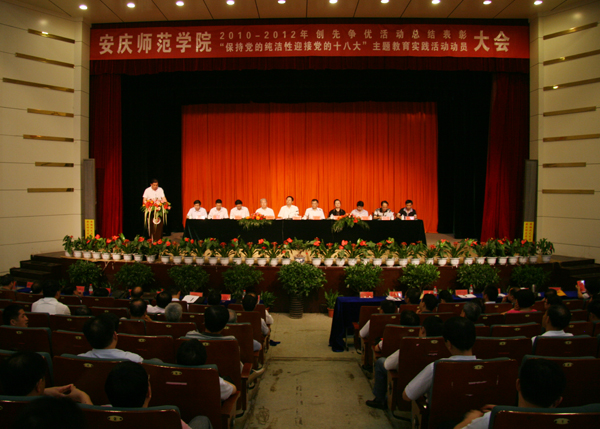 为认真总结创先争优活动,表彰在创先争优活动中涌现的先进基层党组织和优秀共产党员,部署 “保持党的纯洁性、迎接党的十八大”主题教育实践活动,6月29日下午,beat365官网隆重召开创先争优活动总结表彰大会暨“保持党的纯洁性、迎接党的十八大”主题教育实践活动动员大会。党委书记何小祥,党委副书记、院长朱士群,省政协常委赵晓和,党委副书记、纪委书记殷红,党委委员、副院长闵永新、张群、汪时珍,督导员时新中和党委委员、办公室主任刘友忠,党委委员、党委组织部部长陈光明出席会议。全体处科级干部,各党总支委员、党支部书记,受表彰的先进基层党组织负责人和优秀共产党员参加会议。