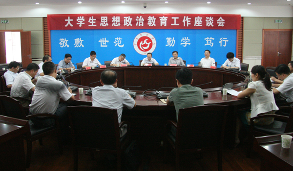 报告会后,冯刚司长一行在二楼圆桌会议室举行了座谈会。座谈会由党委委员、副院长汪时珍主持。在座谈会上,省教育厅思政处张庚家处长指出,安庆师范学院文化传统深厚、学习风气好,倡导的学生“四成”教育有理念、有目标、有措施。张处长强调,大学生思想政治教育工作是做灵魂深处的工作,要有透视的本领、有穿刺的措施。座谈会上,宣传部、学工部、政法学院、团委负责人,2011年全国高校辅导员年度人物、物理与电气工程学院辅导员华秀梅分别就有关工作做了汇报。