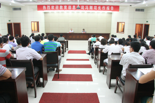 报告会上,冯刚司长分析了大学生思想政治教育在新时期所面临的机遇与挑战,结合中央有关文件与讲话精神,着重从中国新的社会经济发展阶段性特征对大学生思想政治教育的新要求、国际化视野下高校思想政治教育的创新与发展、交叉学科与育人合力的形成等三个方面阐述了高校思想教育政治工作的形势、任务和要求。他指出,高等教育由跨越式发展到内涵式发展,要解决好“特色”与“质量”之间的关系,将突出高校办学特色与提高人才培养质量紧密结合。冯刚司长认为,每一代人有每一代人成长规律与特点,每一代人都要面临各自的机遇与挑战;创新人才是创造性思维与创造性人格相结合;大学生思想政治教育要以良好的心态、客观的态度,做深入细致的研究,实现大学生全面、协调、可持续的发展,要避免有知识没文化、有智商缺智慧、有欲望无理想的现象。冯刚司长还就如何完善创新人才的选拔体系、如何加强与改进大学生思想政治教育工作等方面提出具有启发性的见解。