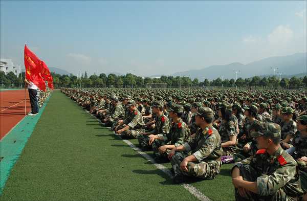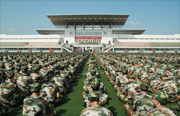 开学典礼暨军训动员大会结束后,全体新生立即投入到紧张的军训当中。 (文/图 钱 敏)
