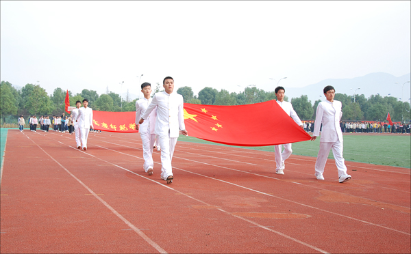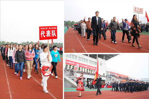 10月24日早上8点,龙山校区塑胶运动场旌旗招展,鼓乐喧天。踏着慷慨激昂的解放军进行曲,国旗、校旗、彩旗队,15个学院代表队以及国培班、新疆班代表队、教工代表队、裁判代表队依次入场。