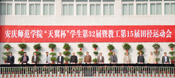 校学生第32届暨教工第15届田径运动会隆重举行开幕式,校党委书记何小祥、院长朱士群、省政协常委赵晓和、副院长闵永新、副院长刘友忠、中国电信股份有限公司安庆分公司总经理胡斌先生、组织部部长陈光明、文学院院长方锡球等领导出席,并在主席台就坐。副院长闵永新主持开幕式。