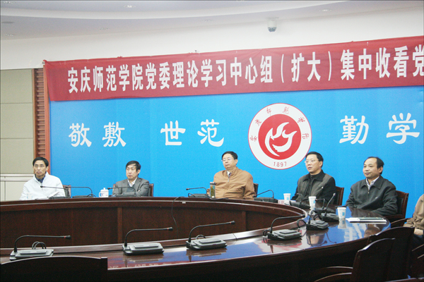 11月8日上午,校党委理论学习中心组在龙山校区行政楼二楼会议室召开扩大学习会议,集体收看中国共产党第十八次全国代表大会开幕盛况。