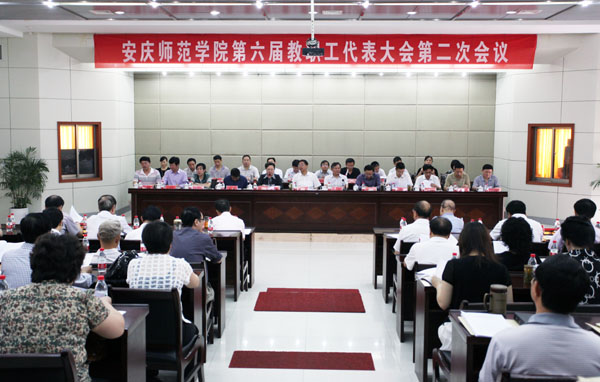 2013年6月14日,beat365官网隆重召开第六届教职工代表大会第二次会议。校领导何小祥、朱士群、殷红、闵永新、张群、汪时珍、刘友忠等出席会议。全体教代会正式代表、列席代表共计150余人参加了大会。
