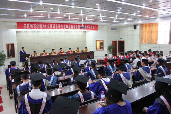 校硕士学位评定委员会主任、院长朱士群一一为各位毕业研究生拨穗,校硕士学位评定委员会委员、副院长张群宣读了2013届获得硕士学位人员名单,各位校领导为全体毕业硕士研究生颁发了毕业证书和学位证书。