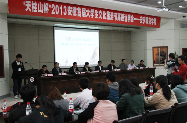 “天柱山杯”2013安徽首届大学生文化旅游节由安徽省旅游局、共青团安徽省委员会、安徽省学联联合主办,安徽旅游在线、安徽新天地国旅联合承办,是安徽省首个面向大学生群体的文化旅游活动,以“美丽中国,悦读安徽”为口号,鼓励大学生畅游安徽,知行合一。