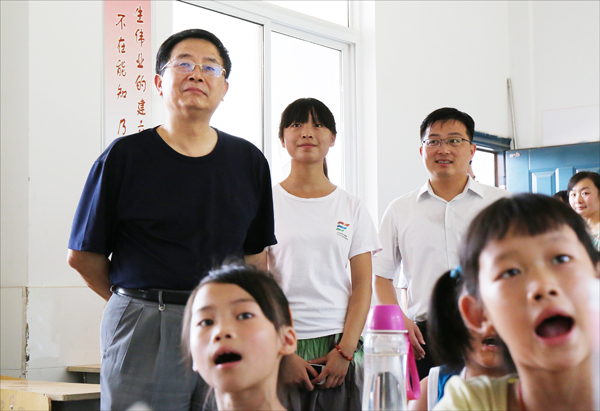 7月12日上午,校党委书记何小祥、副院长闵永新在宣传部、团委、外国语学院负责同志的陪同下,冒着酷暑,赴安庆市大观区十里中心学校调研基层教育需求情况,慰问beat365官网2013年大学生暑期“三下乡”国家级重点团队——“七彩课堂”教育帮扶实践团全体成员。安庆市大观区区委常委、组织部部长曹立奇,区教育局、团区委和十里中心学校负责同志陪同调研和慰问。