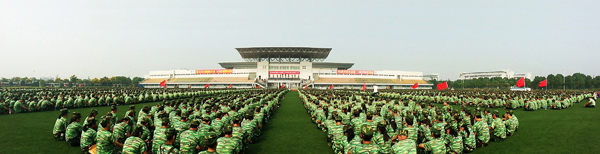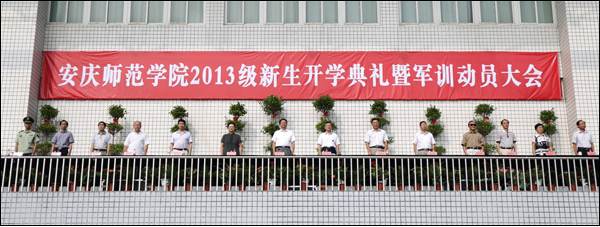 校迎新工作领导小组和军训工作领导小组全体成员、各学院新生班级辅导员、武警安庆支队官兵及2013级近6000名新同学参加了开学典礼暨军训动员大会。
