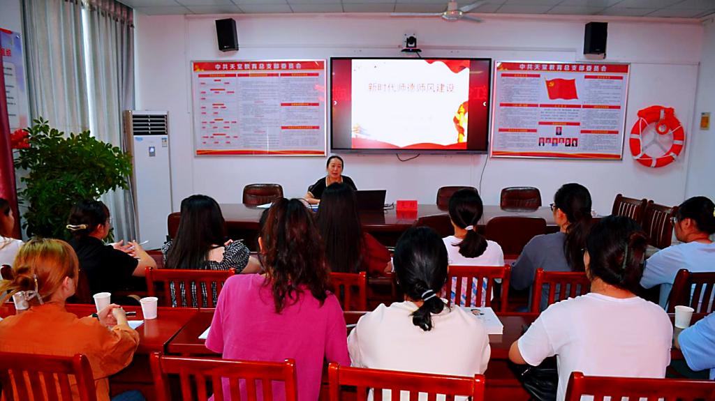 仪式后,吴琼为临时党支部成员和“红色园丁”培养实践团队成员上“新时代师德师风建设”主题党课。她从师德师风的内涵和价值遵循、加强师德师风建设的重要意义、师德师风建设现状和加强师德师风建设的路径等四个方面深入阐述了新时代师德师风建设的理论价值与实践方法。