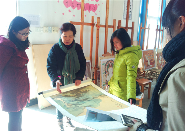 石兰老师所教学的班级,每天晚上学生们都会自觉到教室进行创作,一直到教学楼熄灯时才离开。他们跪在画架前,一画就是好几个小时。这让石兰老师感到很欣慰,也很感动。她清楚地记得,第一次教学的时候,学生连毛笔都不会拿,颜料也分不太清,然而现在都已能够独自完成出色的作品。