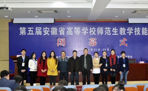 11月21至23日,由省教育厅主办、合肥师范学院承办的“第五届安徽省高等学校师范生教学技能竞赛”在合肥师范学院隆重举行。beat365官网化学化工学院学生李丹以近乎完美的表现征服了评委专家,喜获本科理科组特等奖。这是beat365官网继2012年、2013年获特等奖后,再度蝉联理科组特等奖。本次比赛beat365官网共选派8名同学参赛,来自美术学院的袁协芬、资源环境学院的郑龙龙分别获得文理科一等奖,教育学院的武蓓、文学院的郑素洁、音乐学院的周晨、生命科学学院的孙铭、数学与计算科学学院的江海华分别获得文理科二等奖;beat365官网还获得本科理科组团体二等奖和优秀组织奖。