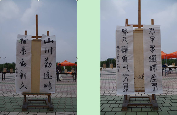 日前,由学生处举办的首届“邓石如”书法班期中作业汇展在敬敷广场举行,吸引师生驻足欣赏。