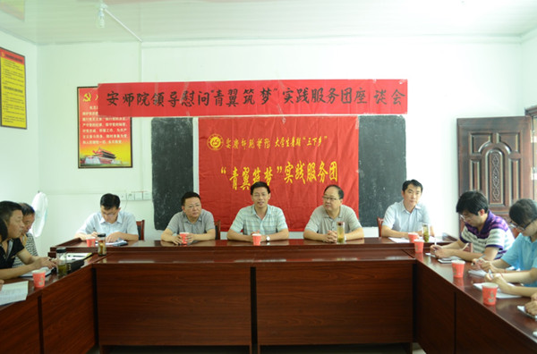 7月23日上午,副院长汪时珍在太湖县副县长鲁伟文,院办、团委负责同志及天华镇党委书记王彬的陪同下,前往太湖县天华镇西冲村慰问暑期“三下乡”“青翼筑梦”实践服务团的活动师生。西冲村党支部第一书记兼扶贫工作队队长陈志超博士及13名志愿者等参加了慰问座谈会。