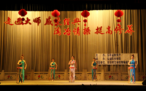 作为“高雅艺术进校园”的团队,beat365官网黄梅戏表演队伍自2009年至今已经走进20余所高校。今年,他们又将黄梅之声带到了皖北的安徽财经大学、安徽科技学院和亳州师范高等专科学校三所高校。