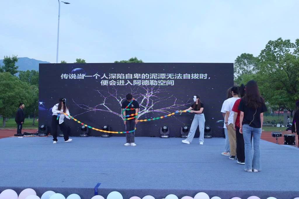 心理情景剧《“姿”卑》以幽默风趣的语言和精湛的表演赢得了台下观众的阵阵掌声。该剧的灵感来源于阿德勒的《自卑与超越》,剧中主人公“子北”在生活中总是习惯性地自我否定、自我怀疑,也无法接纳自己的不完美。“我们希望通过《“姿”卑》中主人公的成长蜕变历程让大家学会关注自己内心最真实的感受,尝试去接纳包容并最终化解它。”负责人、应用心理学专业2019(2)班的张世林说到。