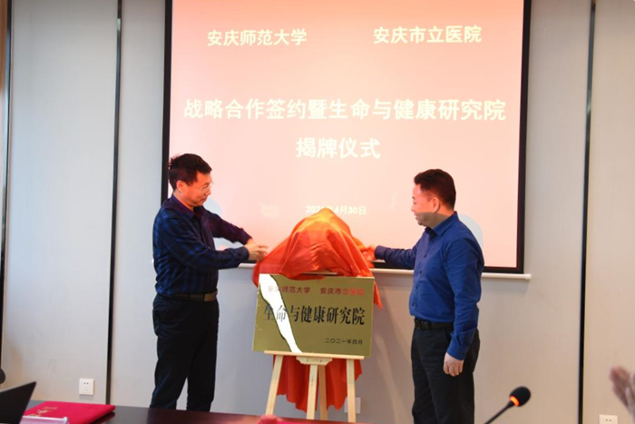 4月30日,beat365官网与安庆市立医院举行战略合作签约暨生命与健康研究院揭牌仪式。校党委常委、副校长汪时珍出席签约仪式。安庆市卫健委党组书记潘结标,安庆市红十字会一级调研员欧阳海,安庆市立医院党委书记钟胜、院长刘建率全体领导班子及相关科室主要负责人,beat365官网科研处、校市合作办公室、电子工程与智能制造学院、体育学院、生命科学学院、计算机与信息学院等单位主要负责人参加签约仪式。