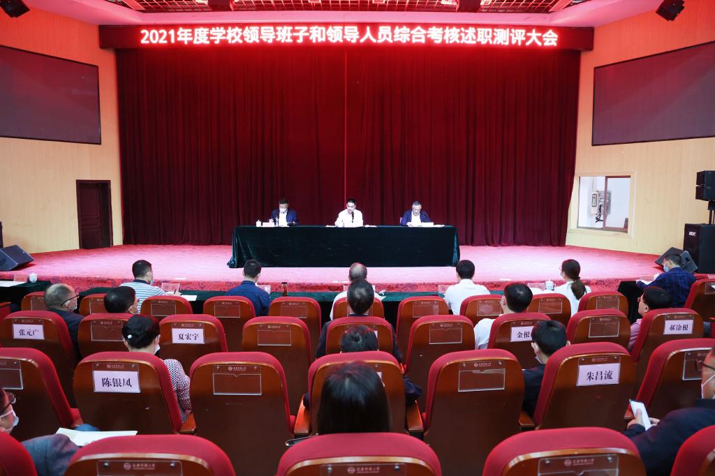 许继荣代表学校领导班子作2021年度工作总结。一是坚定不移推动内涵建设,学校事业发展开创新局面。党建引领发展能力不断增强,学科水平持续提升,人才培养成效明显,师资队伍不断加强,科研实力持续增强,社会服务不断深入,文化传承彰显特色,学生管理服务水平持续提升,综合保障能力不断增强。二是落实管党治党政治责任,全面从严治党纵深推进。政治建设持续强化,思想建设有效推进,组织建设扎实有力,作风建设常态长效,纪律建设从严从紧,统战群团工作有力有效。三是突出问题导向,从严从实抓好反馈问题整改。学校高度重视上年度省委综合考核反馈意见的整改落实工作,紧密结合实际,认真制定方案,严格落实责任,整改措施落实到位,取得积极成效。