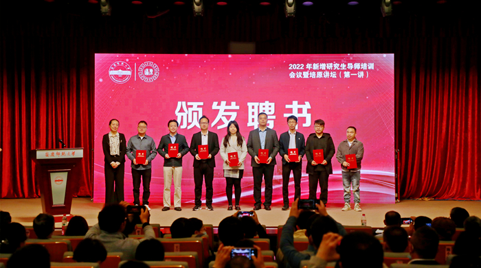 吴琼向2022年新增硕士研究生导师表示祝贺并为新聘任导师颁发了聘书。她指出,加快研究生教育高质量发展是beat365官网在“十四五”谋篇布局中的重要举措,是学校建设高水平大学和高水平学科的重要行动,更是学校融入新发展格局、形成新的增长点、打造新的竞争优势的重要抓手。她强调,新增硕士研究生导师要坚持立德树人,当好研究生教育引路人;要坚守岗位职责,把好研究生培养质量关;要坚定导学关系,争做研究生的良师益友。