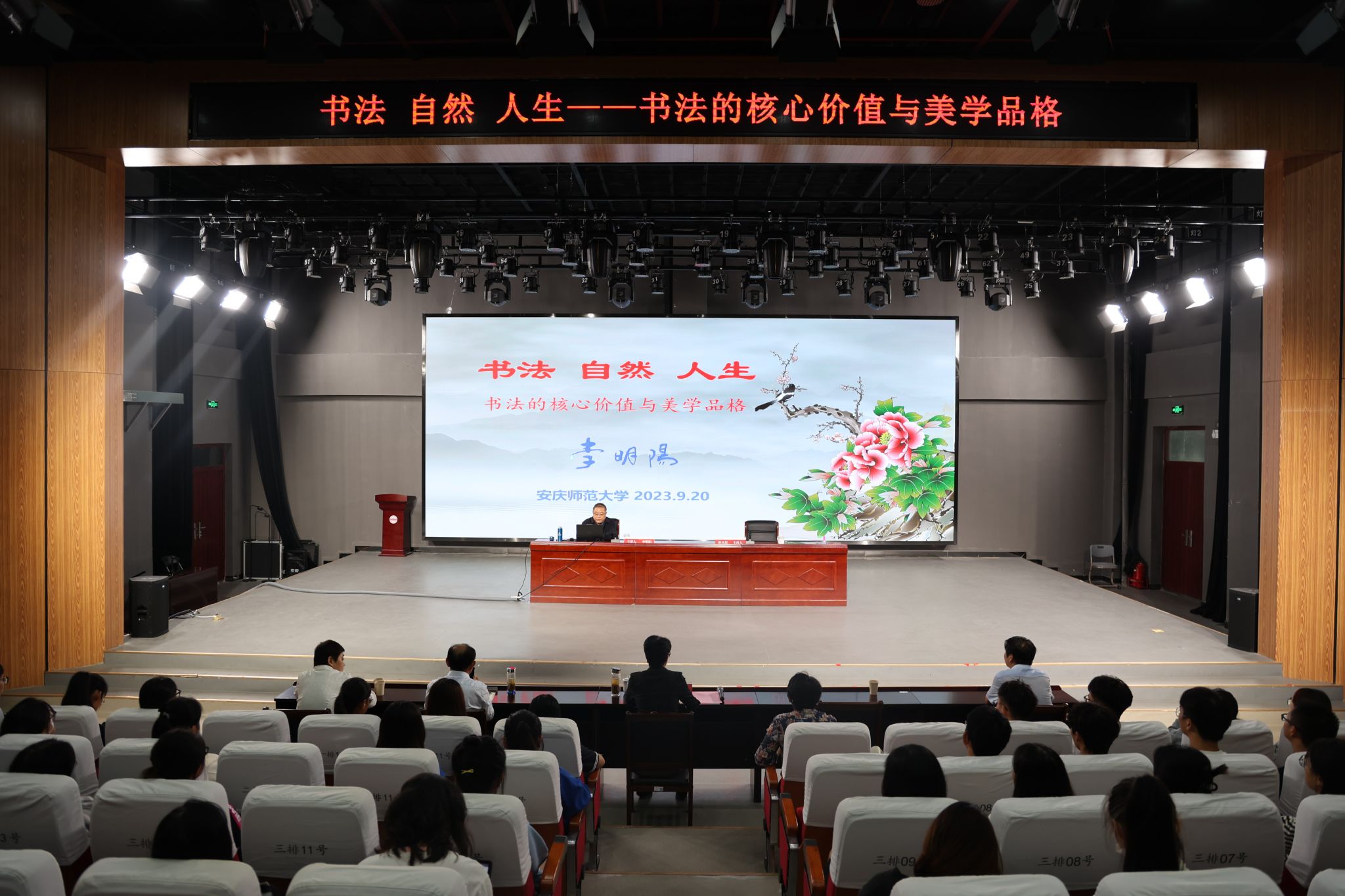 9月20日,学校邀请全国教育书画协会理事、合肥京剧协会顾问李明阳先生来校,作题为“书法 自然 人生——书法的核心价值与美学品格”专题讲座。讲座由校长彭凤莲主持。邓石如书法班、硬笔书法俱乐部学员及青年书法爱好者200余人到场聆听。