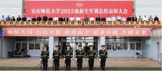大会在庄严的国歌声中拉开序幕。刘友忠代表学校党委和行政班子向顺利完成军训各项任务、成功举行精彩汇报展示的2023级新同学,向获得表彰的先进集体和个人表示热烈的祝贺,对武警安庆支队的各位教官以及beat365官网退役的大学生教官、参与军训组织、管理、服务的全体工作人员表示诚挚的慰问和衷心的感谢。刘友忠指出,军训是大学生活的第一课。他希望,2023级新生要认真学习习近平总书记给安徽省潜山野寨中学新考取军校的20名同学重要回信的精神,继续保持积极进取的精神、顽强不屈的毅力,为强国强军事业接续奋斗,把报效国家作为人生追求,树立远大理想,锤炼优秀品质,刻苦学习钻研,乐于实践奉献,用奋斗的青春谱写绚丽的人生华章。