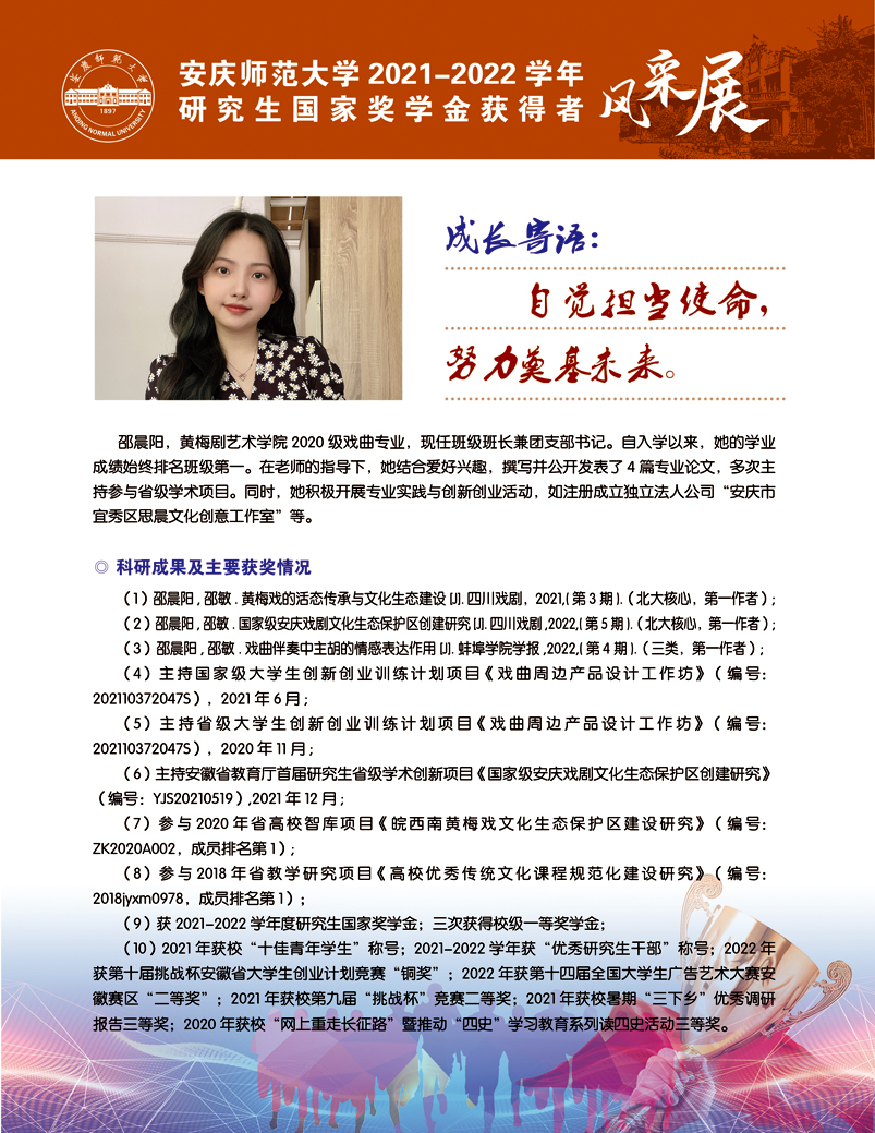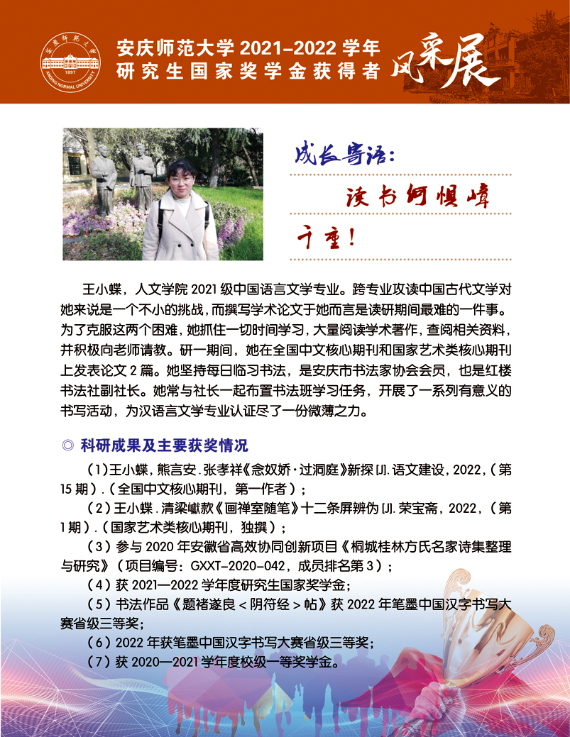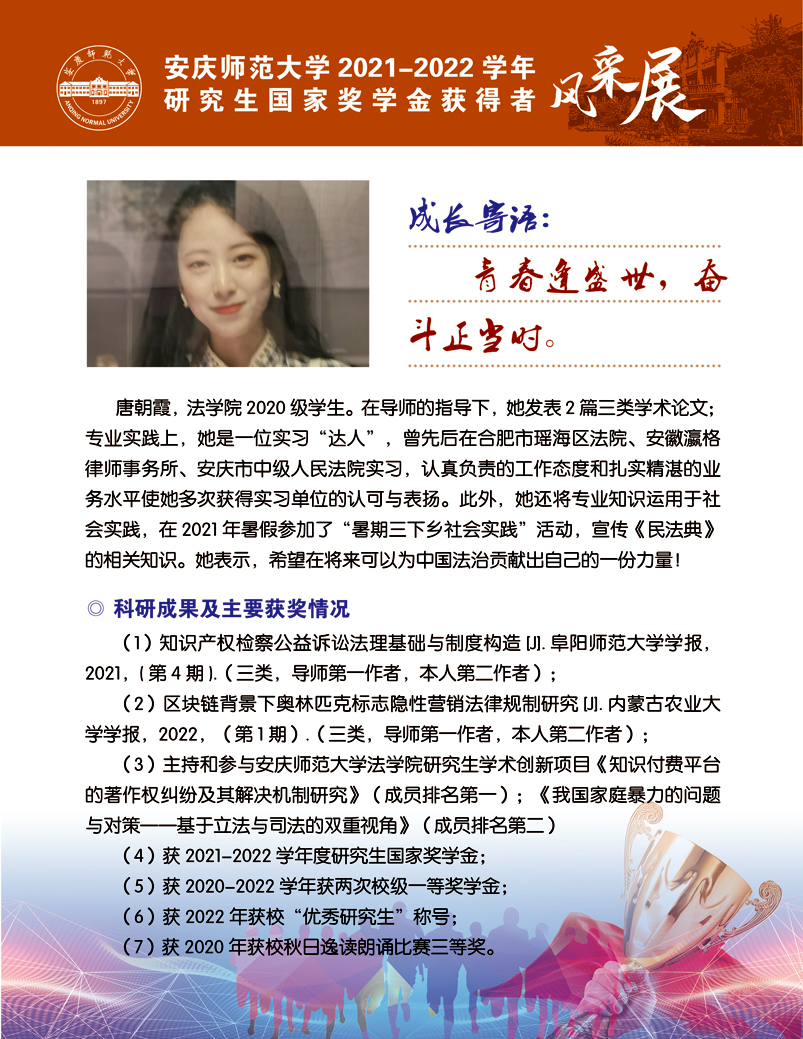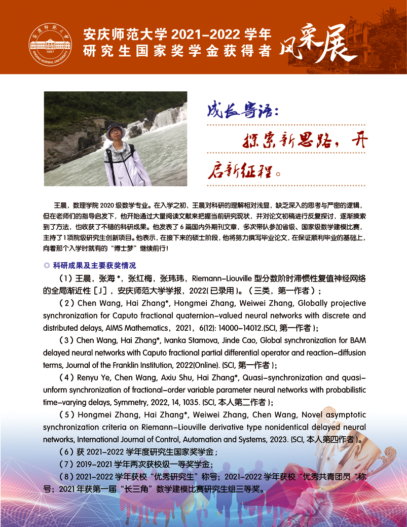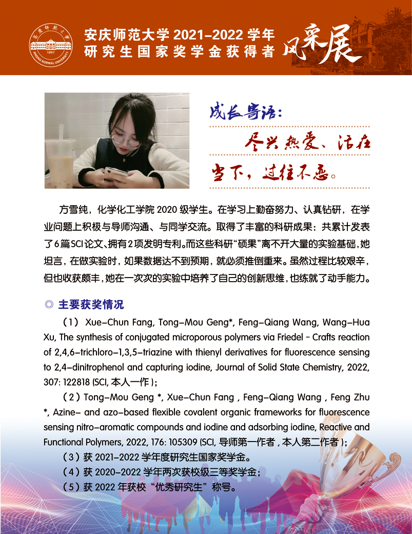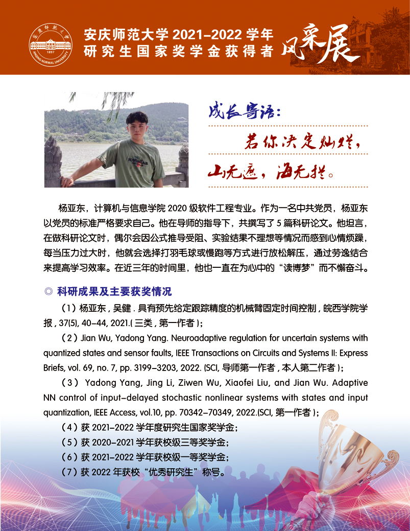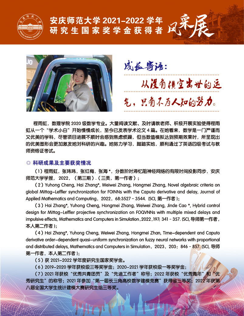 编者按:中国共产党beat365平台唯一官网第二次党员代表大会即将召开,这是学校在推进高水平大学建设新征程中召开的一次重要会议。学校第二次党代会肩负着统一思想、凝心聚力、统筹规划、引领发展的重要使命,既要全面总结过去五年来学校党的建设和事业发展取得的好成绩、形成的好经验,也要认真研判新形势、应对新挑战,为学校新阶段实现高质量发展锚定方向、擘画蓝图。为迎接学校第二次党代会的召开,学校特推出【砥砺奋进的五年∙学生风采】系列报道,接续2018年以来【国奖风采录】专栏报道,集中展现beat365官网青年学子昂扬向上、奋发有为的青春风貌,激励与启迪广大青年立志做有理想、敢担当、能吃苦、肯奋斗的新时代好青年,让青春在全面建设社会主义现代化国家的火热实践中绽放绚丽之花。