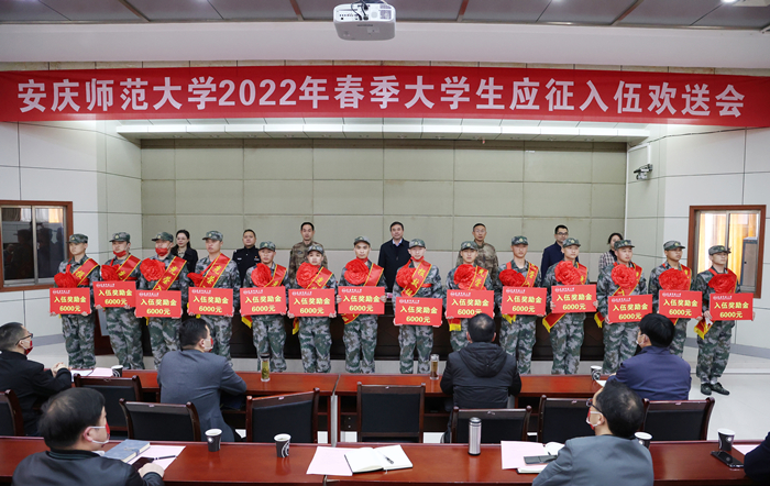 会上,学校人武部负责人宣读了春季应征入伍大学生名单,与会领导为应征入伍的大学生颁发了入伍奖励金。教师代表、新兵代表和退役大学生代表分别发言。