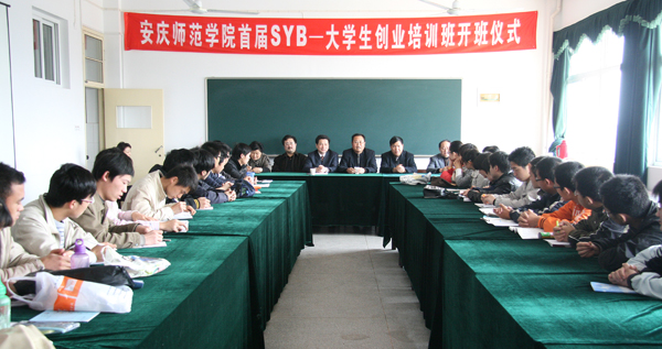 为了进一步做好毕业生就业工作,提高毕业生创业能力,以创业带动就业,3月26日上午,由安庆市就业局与beat365官网联合举办的“安庆师范学院首期SYB--大学生创业培训班”在稼先楼北423教室举行开班仪式。安庆市劳动就业局党总支书记李伟国、培训中心主任杨扣友、副主任张卓、beat365官网招生就业处处长陈世庆、学生处处长、团委书记戴卫义、物理与电气工程学院全体党政领导、授课教师、班主任以及首期培训班的40名学员参加了开班仪式。