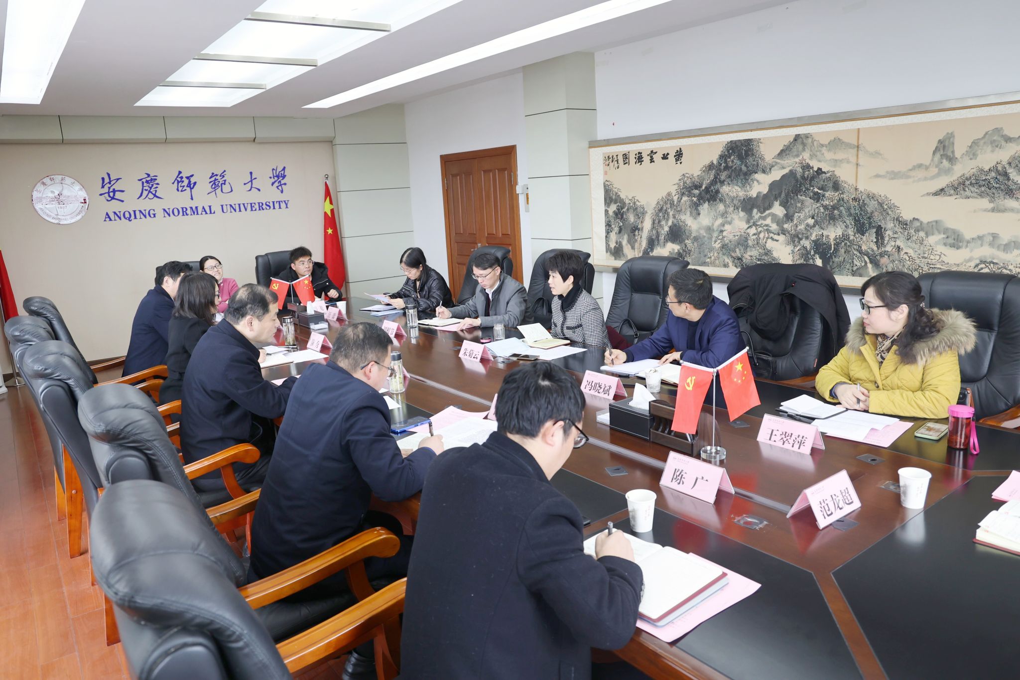 2月24日,安庆市人大常委会副主任、民建安庆市委会主委朱菊云一行来校调研交流。校党委副书记崔明,校党委常委、党委统战部部长陈秀出席调研会。党委组织部、党委统战部、科研处负责同志,学校民建会员代表参加会议。